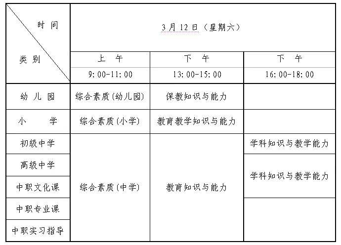 初级中学和普通高级中学教师资格考试笔试为3个科目: