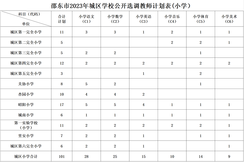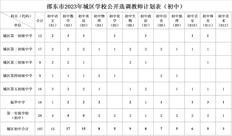 本次公开选调教师计划208人(初中107人、小学101人),详见《邵东市2023年城区学校公开选调教师计划表》(附件1和2)。